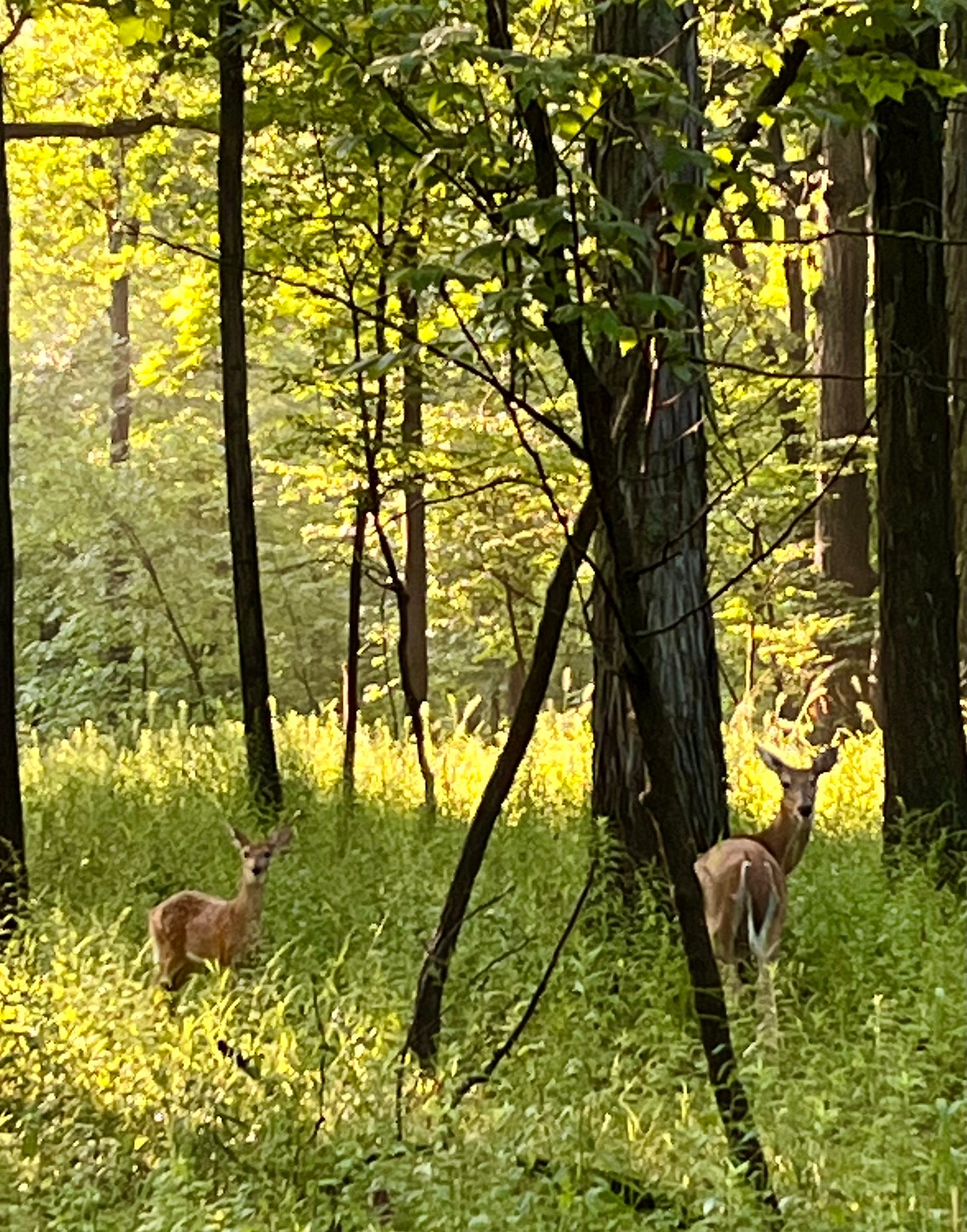 Yesterday, I got up early to run, to go where birds sing and the sun shines through the misty trees, and a doe and fawn posed sweetly by the trail. To let my feet move and my heart beat. I tried to welcome all the feelings, including my fear, my anxiety.